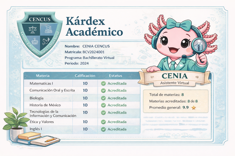“Hola, soy CENIA tu asistente virtual en CENCUS. Estoy aquí para ayudarte a encontrar la información que necesitas durante tu vida académica.”